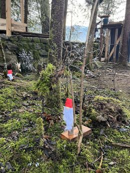Eine wunderbare Geschichte erzählt Astrid Lindgren mit „Tomte Tummetott“. Der Wichtel bewacht die Höfe in Schweden und sorgt dafür, dass es Mensch und Tier gut geht. Die Kinder der Projektgruppe haben Tomtes gebastelt und in den Schulwald gestellt. Dort passen sie auf die Tiere des Waldes auf. Ein Besuch lohnt sich!
