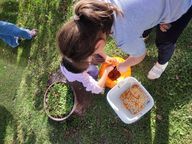 Heute haben wir die Religionsstunde draußen im Freien verbracht. Nach dem gesungenen Kreuzzeichen haben wir Schätze in der Natur gesucht und mit ihnen das Wort ERNTEDANK gestaltet. Zum Schluss haben wir Gott mit ein paar Danke-Sätzen und einem Lied für unsere schöne Welt gedankt.