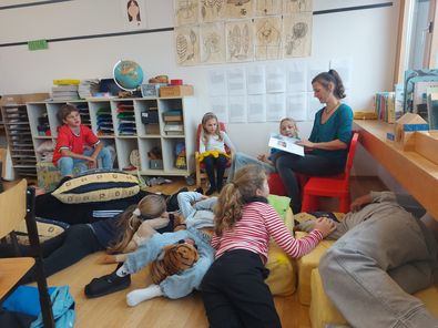 Heute, am 1. Tag unseres 6teiligen Musikateliers, ging es um die Beziehung von Klang und Farbe. Anhand des Buchs „Die wahre Geschichte von allen Farben“ haben die Kinder Farben Charaktereigenschaften zugeordnet und diese musikalisch umgesetzt. Außerdem haben wir recht ausführlich mit Orff - Instrumenten musiziert und natürlich….lalala….gesungen. Es war sehr schön den ganzen Vormittag zu musizieren!