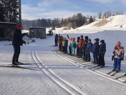 Dieses Mal stand in der Mut-tut-Gruppe die Sportart Langlaufen/Biathlon auf dem Programm. Nach einem Aufwärmtraining im Turnsaal hieß es: „Ab ins Freie!“ Schon der Weg in die Junkerau war ein Abenteuer, weil er teilweise von so einer dicken Eisschicht überzogen war, dass man ihn super als Rutschbahn verwenden konnte. In der Junkerau bekamen alle eine Langlaufausrüstung vom SC Egg. Zuerst erklärte uns Langlauftrainer Peter ein bisschen etwas über das Langlaufen. Dann drehten wir ein paar kleine Übungsrunden, bevor wir auf die ein Kilometer lange Loipe gingen. Alle Kinder hatten viel Spaß und zeigten große Ausdauer. Nach der ersten Runde versorgten uns Teresa und Margit mit einem warmen Punsch und leckeren Waffeln. Gut gestärkt ging es danach weiter. Manche gingen noch einmal auf die Loipe, andere wagten sich ans Zielschießen und einige machten sich einen Spaß daraus, immer wieder einen Hügel hinaufzuklettern und herunterzufahren. Die Zeit verging wie im Flug und bald mussten wir wieder in Richtung Schule aufbrechen.